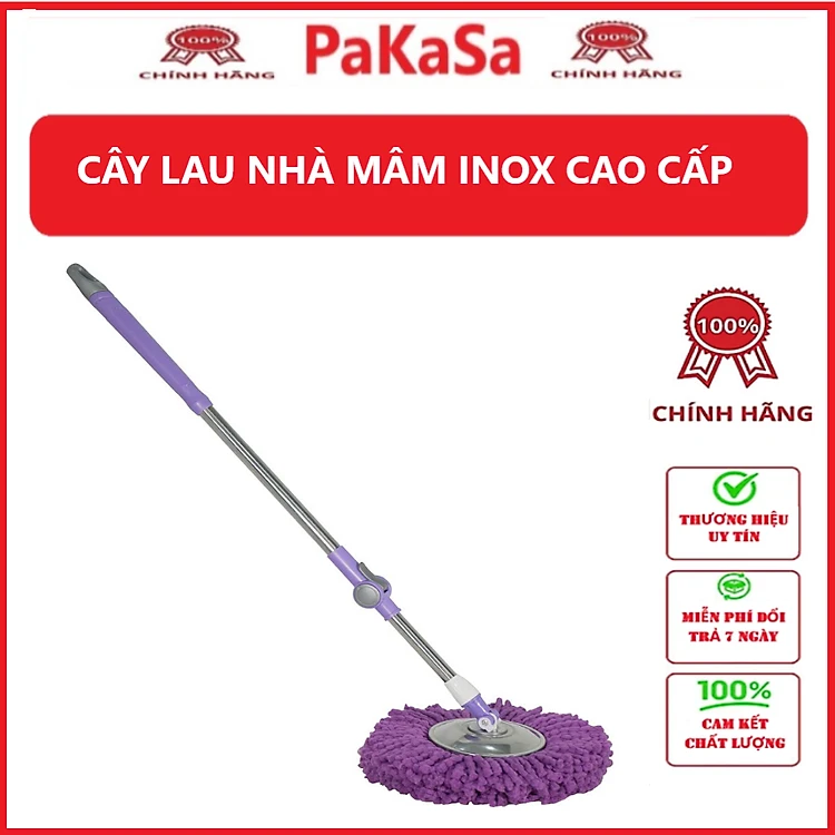 Cây Lau Nhà Tròn Xoay 360 Độ Mâm Inox Tặng Kèm Bông Lau PaKaSa - Giao màu ngẫu nhiên