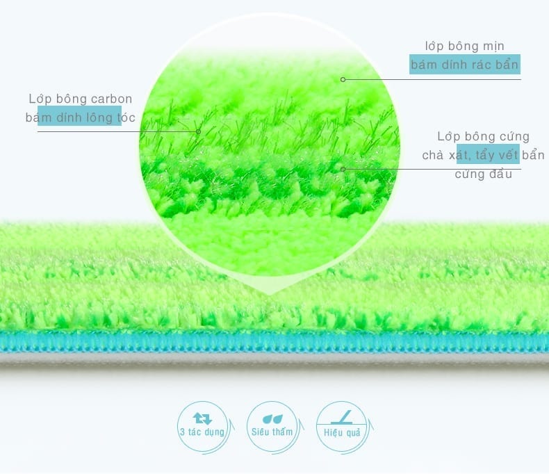 Bông lau thấm hút tốt, nếu bạn sử dụng thường xuyên, khoảng 3 tháng bạn nên thay bông lau 1 lần nhé