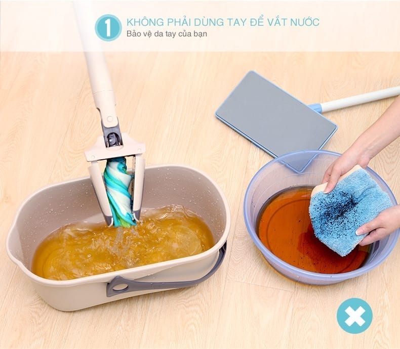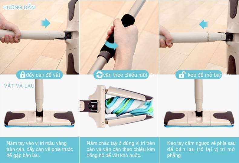 Dễ dàng sử dụng, bạn chỉ cần vặn xoắn nhẹ để vắt khô, không còn phải tháo bông lau để giặt trong mỗi lần dọn dẹp nữa