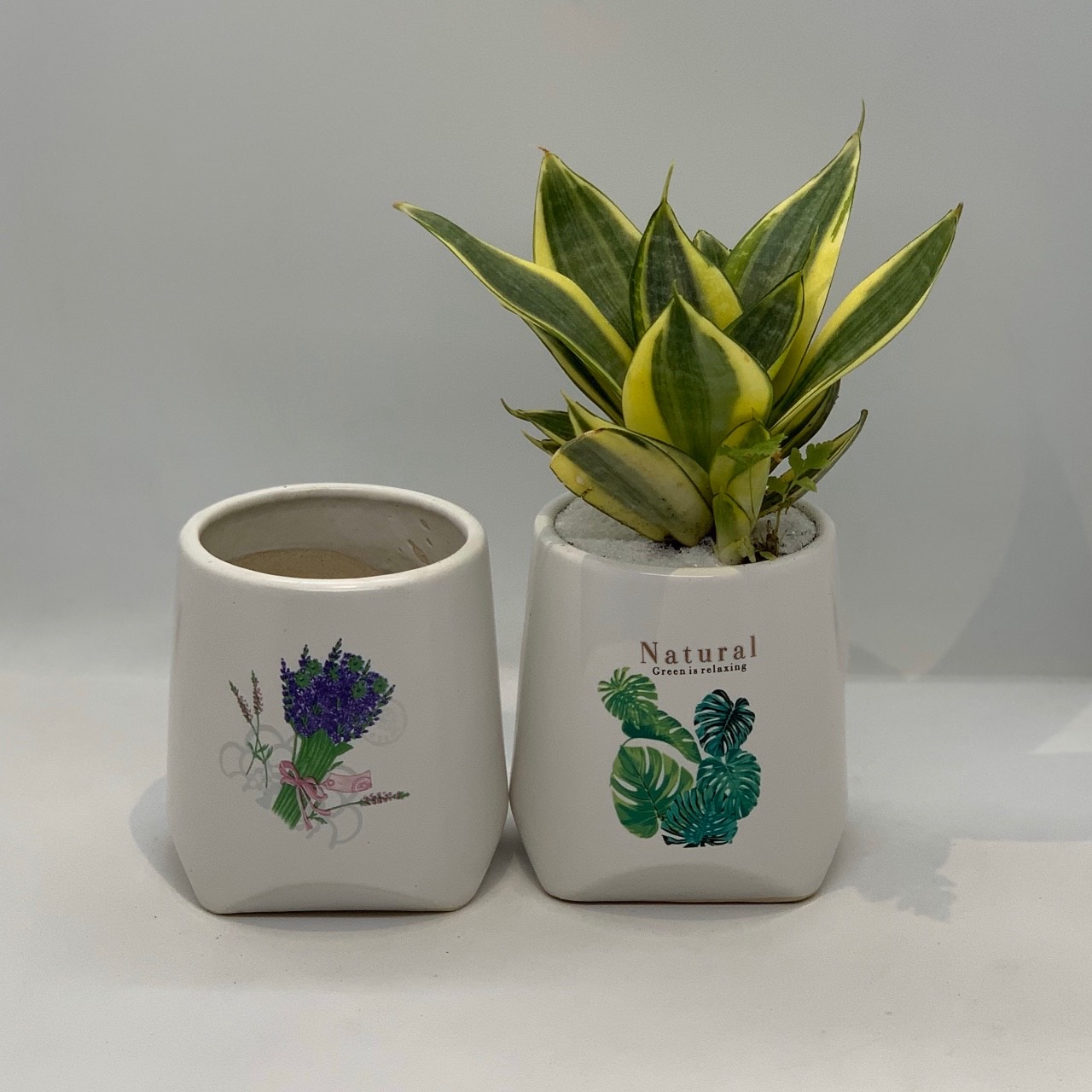 Cây Lưỡi Hổ Thái - 8x8x20 Cm - Cây Mini Để Bàn & Chậu Gốm Sứ Bát Tràng Trồng Cây Cẩm Nhung Fittonia, Sen Đá, Xương Rồng, Tiểu cảnh Terrarium - Dáng Nón Cụt – Mầu Trắng