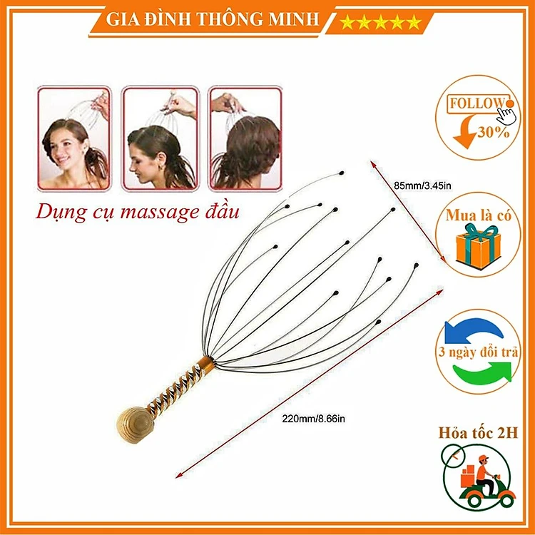 (́ ̉) Cây Massage Đầu Giảm Stress, Dung Cụ Mát Xa Đầu Thư Giãn, Bớt Đau Nhức Đầu Tiện Lợi