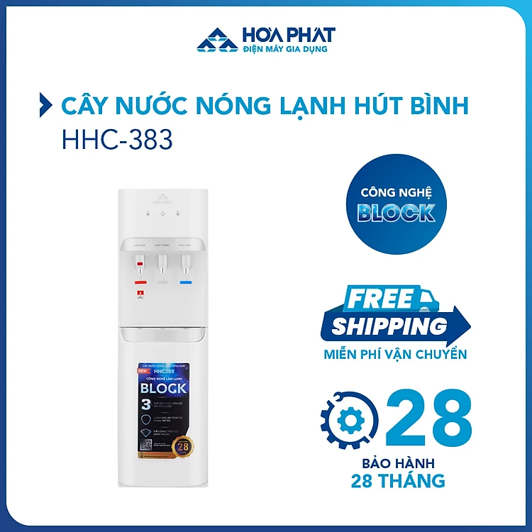 Là cây nước nóng lạnh Hòa Phát thế hệ mới với 3 chế độ nước - 3 vòi Nóng, Lạnh, Thường, sản phẩm sử dụng công nghệ BLOCK làm lạnh nước nhanh và sâu tới 5 độ C, công suất làm nóng cao vượt trội cho nước nóng tới 95 độ chỉ sau 2 phút. Được thiết kế với ngoại tinh tế, sang trọng, vỏ nhựa ABS sơn tĩnh điện trơn láng, cây nước nóng lạnh hút bình Hòa Phát sẽ làm đẹp thêm không gian gia đình bạn.