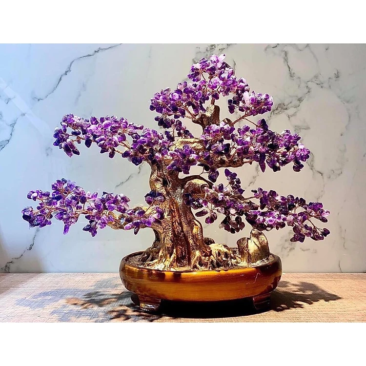 Cây Tài Lộc bonsai phong thủy đá thạch anh tím - Cao 40 cm