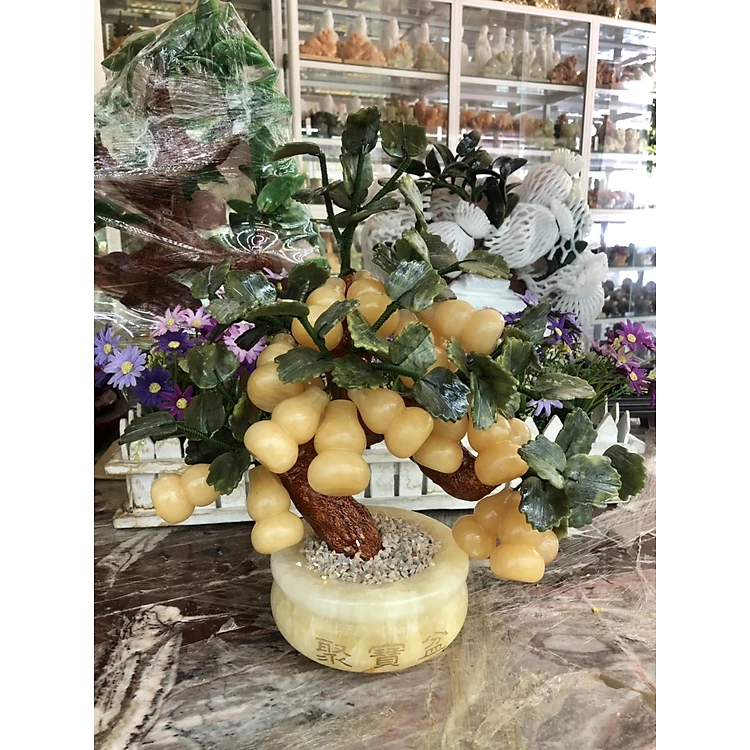 Chất liệu: Trái hồ lô là đá ngọc hoàng long, lá bằng đá ngọc Ấn Độ ( Đá Serpentine )