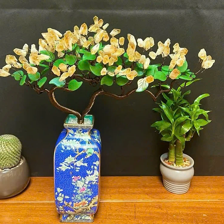 Cây Tài Lộc Mầm Tinh Thể Thạch Anh Vàng – Chậu Gốm Sứ Cao Cấp – Trang Trí Sang Trọng