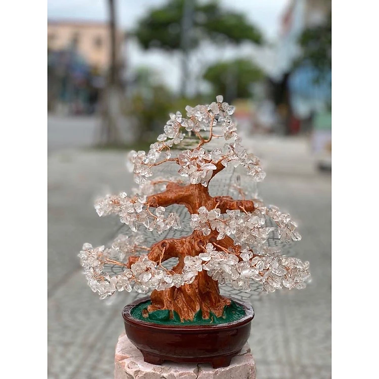 Cây Tài Lộc phong thủy đá thạch anh trắng - Cao 30 cm