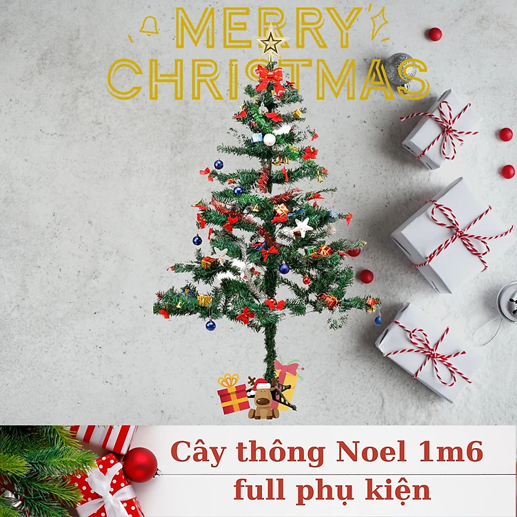 Cây thông Noel 1,6m trang trí cho mùa giáng sinh an lành tặng kèm phụ kiện đầy đủ - Cây thông Noel full phụ kiện
