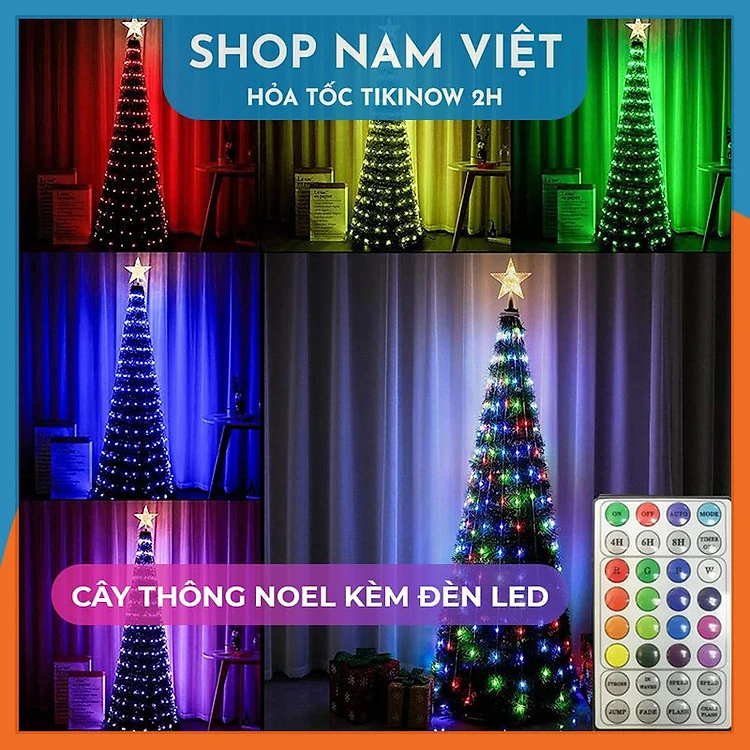 Cây Thông Noel Kèm Đèn Led Điều Khiển Remote, Có Thể Gấp Gọn, Trang Trí Giáng Sinh