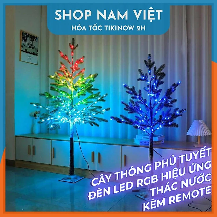Cây Thông Noel Phủ Tuyết Có Đèn Led RGB Trang Trí Giáng Sinh, Có Thể Gấp Gọn, Kèm Remote