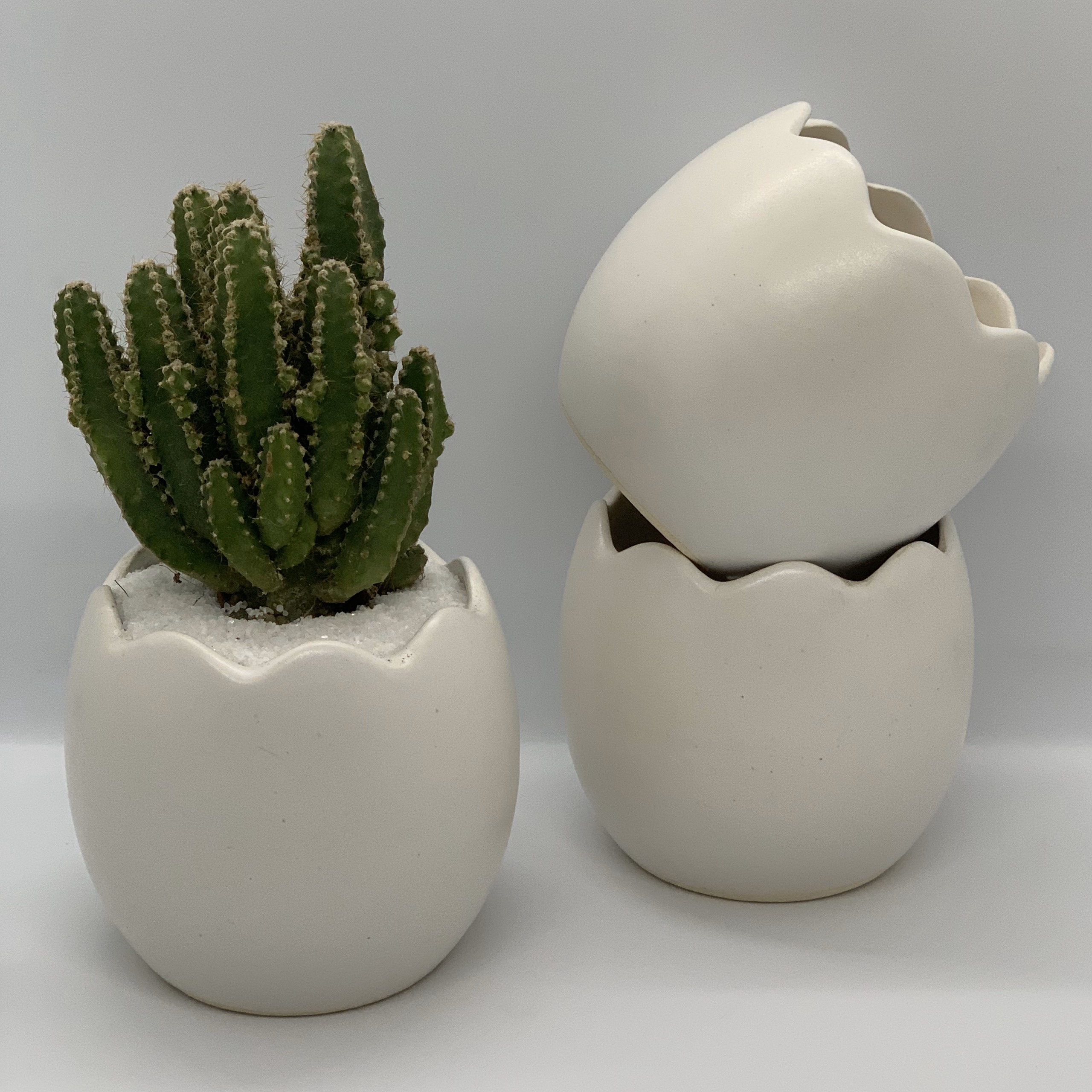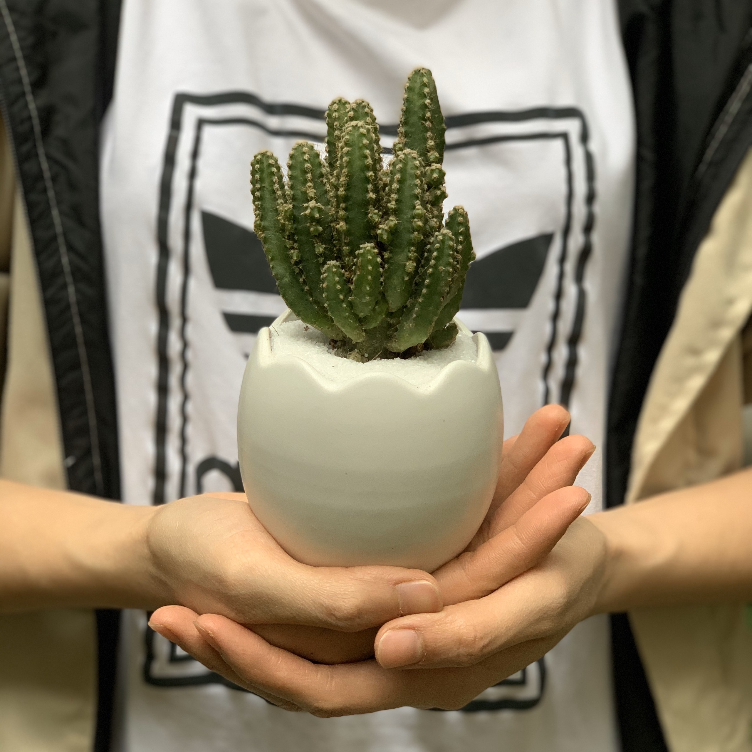 Cây Xương Rồng Thanh Sơn - 7x7x20 Cm - Chậu Cây Mini Để Bàn - Chậu Sứ Trồng Cây Dáng Quả Trứng – Cây Xương Rồng Mini Thật