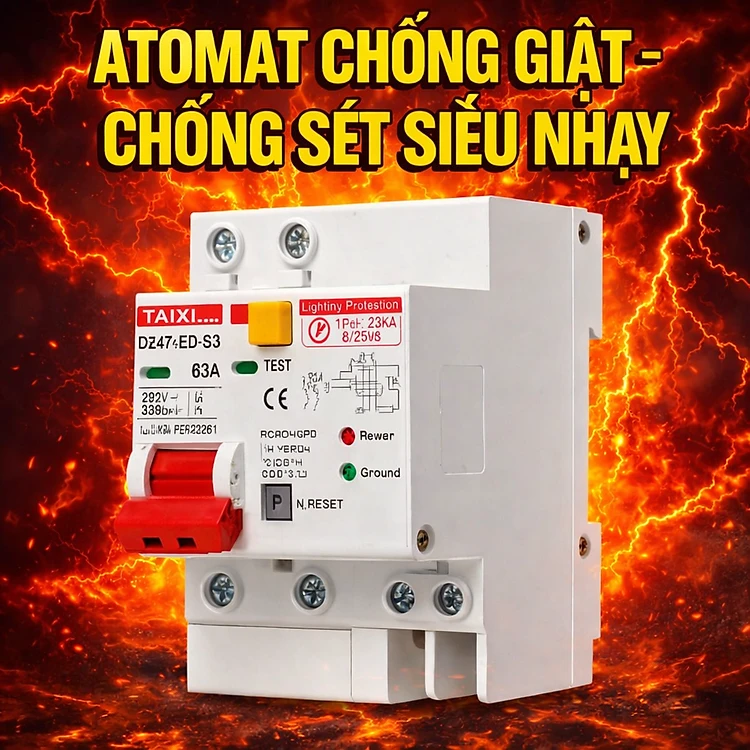 CB Chống Giật Chống Sét Lan Truyền 63A – Ngắt Nhanh, An Toàn Cho Nhà Ở & Văn Phòng