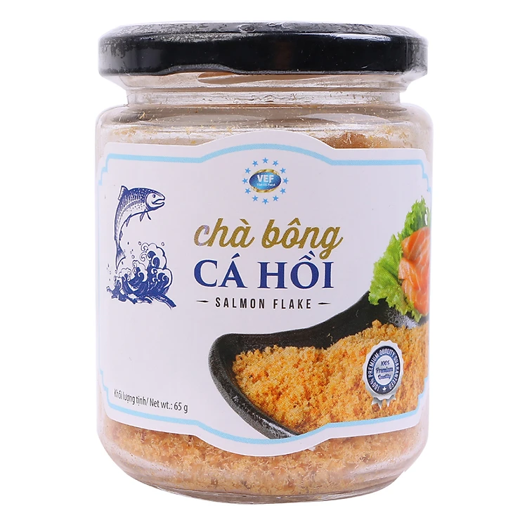 - Chà Bông Cá Hồi Salmon Flake Việt EU (65g) được chế biến từ 95% cá hồi tươi ngon cùng các loại gia vị, phụ liệu mang đến cho bạn món chà bông thơm ngon, bổ dưỡng, tốt cho sức khỏe.