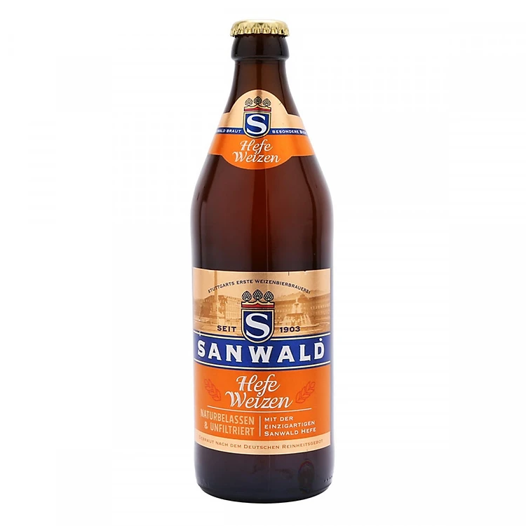 - Bia Sanwald Hefeweizen (500ml) Là một dòng bia khá xuất sắc đến từ Đức, được truyền tai nhau về mức độ thơm ngon của nó. Bia nổi bật với màu vàng cam khá lý thú, tạo cảm giác nhẹ nhàng thoải mái cho người thưởng thức.