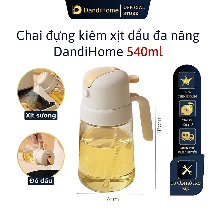 Chai đựng kiêm xịt dầu ăn 2 trong 1 đa năng DandiHome - Bảo hành 6 tháng