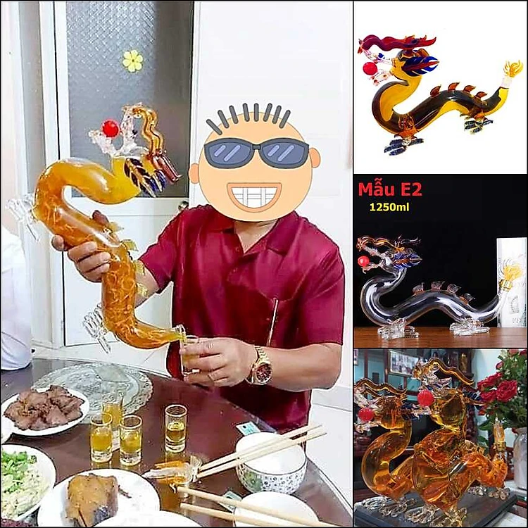 Chai Đựng Rượu Thủy Tinh 1250ML cao cấp mẫu con rồng ngũ sắc – Chai Đựng Rượu Đẹp - Bình Thủy Tinh Đựng Rượu làm quà tặng (E2)