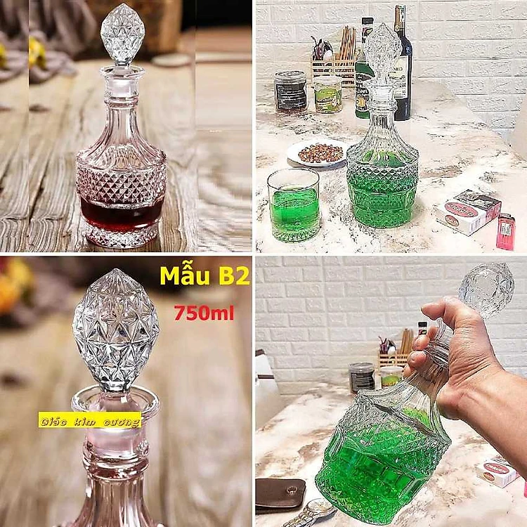 Chai Đựng Rượu Thủy Tinh Cao Cấp 750ML mẫu trụ tròn họa tiết nổi – Vỏ Chai Rượu Đẹp sang trọng (mẫu B2)