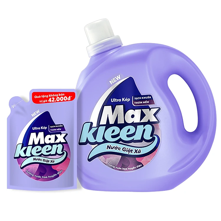 Chai Nước Giặt Xả Maxkleen Hương Nước Hoa Huyền Diệu (2.4kg) - Tặng Túi Nước Giặt Xả (600g)
