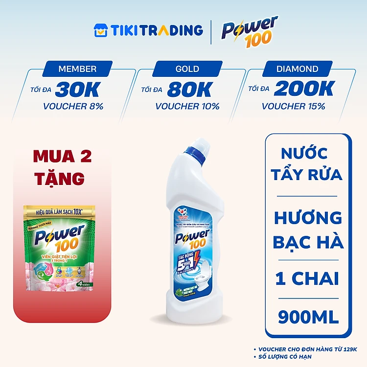Chai Nước Tẩy Bồn Cầu Và Nhà Tắm POWER100 Hương Bạc Hà 900ml