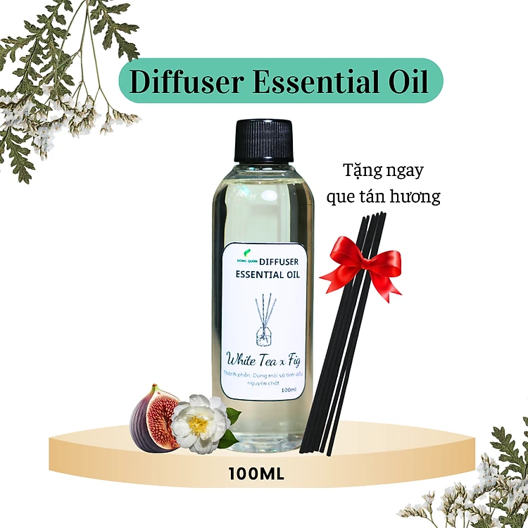 Chai Refill tinh dầu tán hương WHITE TEA & FIG (Trà Trắng & Trái Sung) 100ml, thơm phòng, tỏa hương, tíết kiệm.