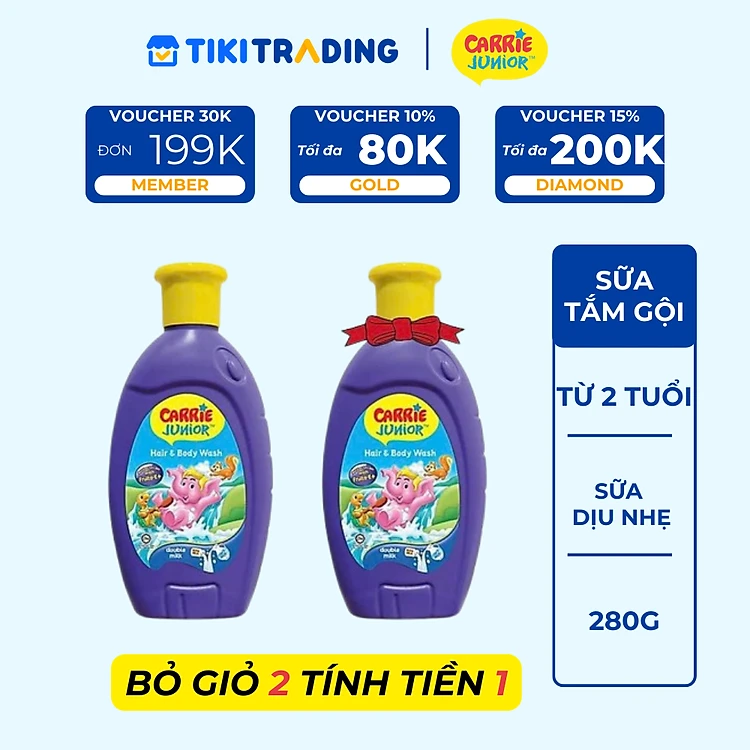 Chai Sữa Tắm Gội cho bé Carrie Junior hương trái cây thiên nhiên 280g