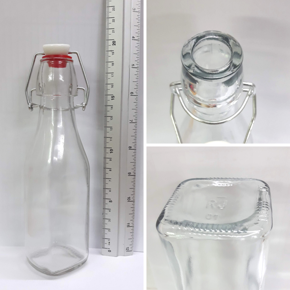 CHAI THỦY TINH NẮP CÀI KÍN HƠI 250ML - ĐÁY VUÔNG