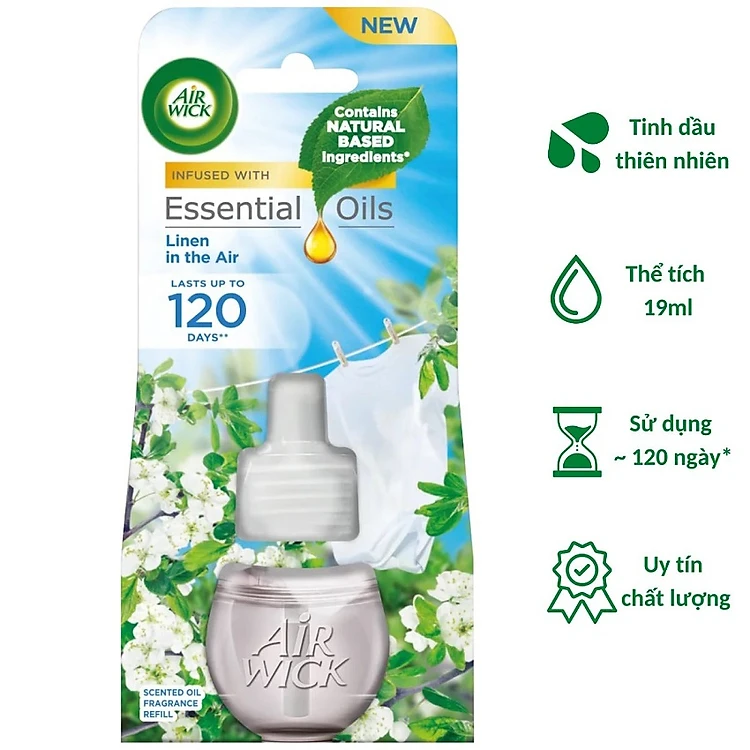 [Sử dụng điện 220V] Chai tinh dầu cắm điện Air Wick Refill AWK2342 Linen In The Air 19ml (Hương hoa táo)