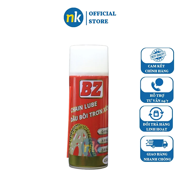 Chai xịt bảo dưỡng sên xích, sên trần, sên phốt cao su thương hiệu BZ Chain Lube 450ml - Hàng Chính Hãng 100%