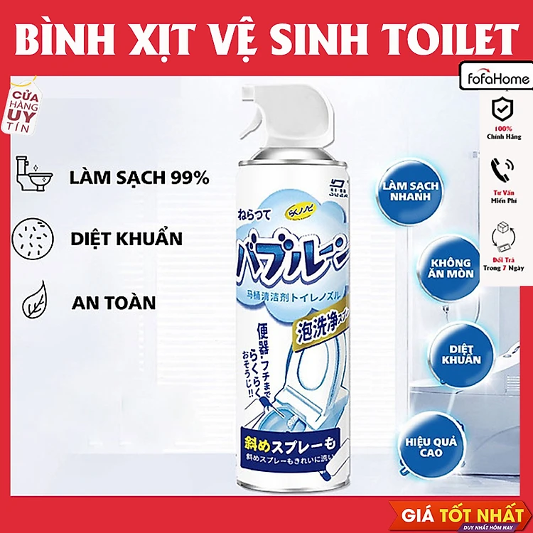 Chai Xịt Bọt Làm Sạch Vệ Sinh Bồn Cầu Toilet Dung Tích 500 Ml Tẩy Rửa Mọi Vết Bẩn Hương Chanh Thơm Mát