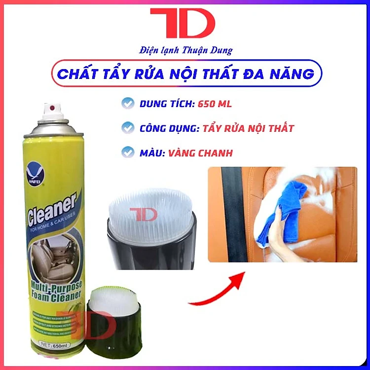 Chai xịt bọt vệ sinh đa năng nội thất, ghế da, trần nỉ ô tô Cleaner, 650ml, Điện Lạnh Thuận Dung