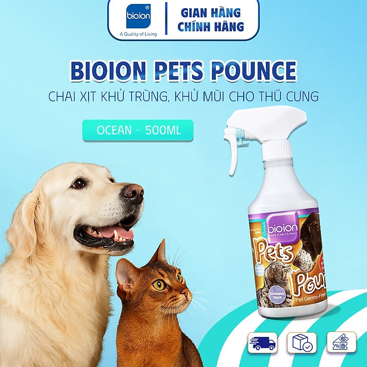 Chai Xịt Khử Mùi Sạch Khuẩn Bioion Pets Pounce 500ml Hương Ocean