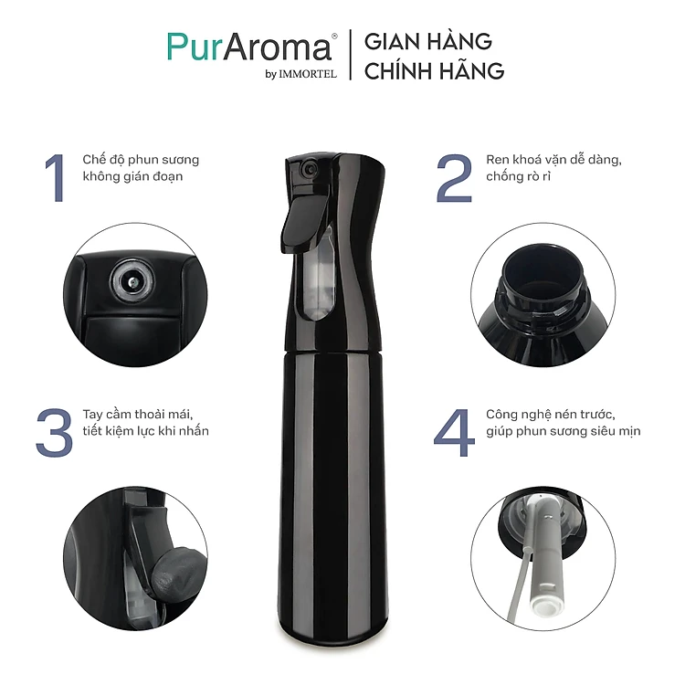 Chai Xịt Phun Sương 300ML PurAroma - Công Nghệ Nén Phun Hạt Nano Siêu Mịn