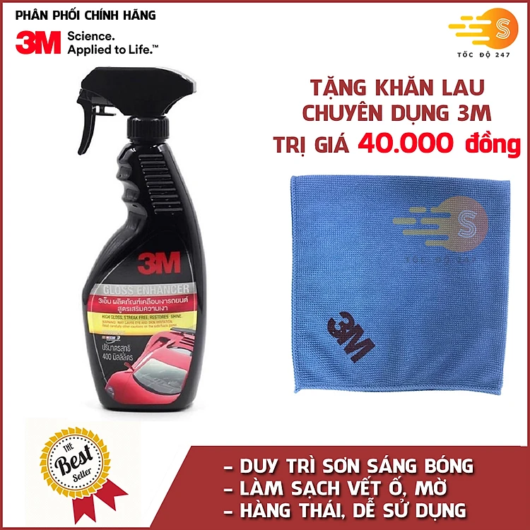 Chai xịt tăng độ bóng sơn ô tô 3M 39034LT (Hàng Thái) tặng khăn lau ô tô chuyên dụng 3M màu ngẫu nhiên