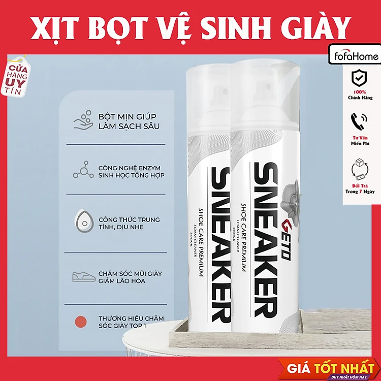 Chai Xịt Tạo Bọt Tuyết Làm Sạch Giày Dép SNOKER 300ml Giặt Giày Khô, Làm Sạch