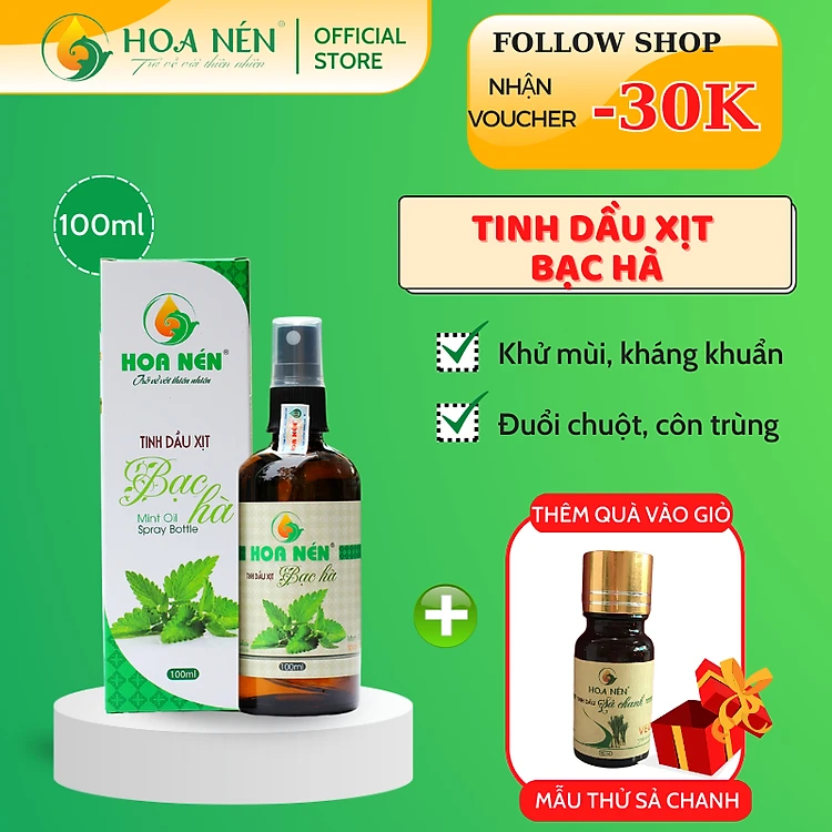Chai Xịt Tinh dầu Bạc hà 100ml - Hoa Nén - Xịt phòng đuổi muỗi, côn trùng, thơm mát