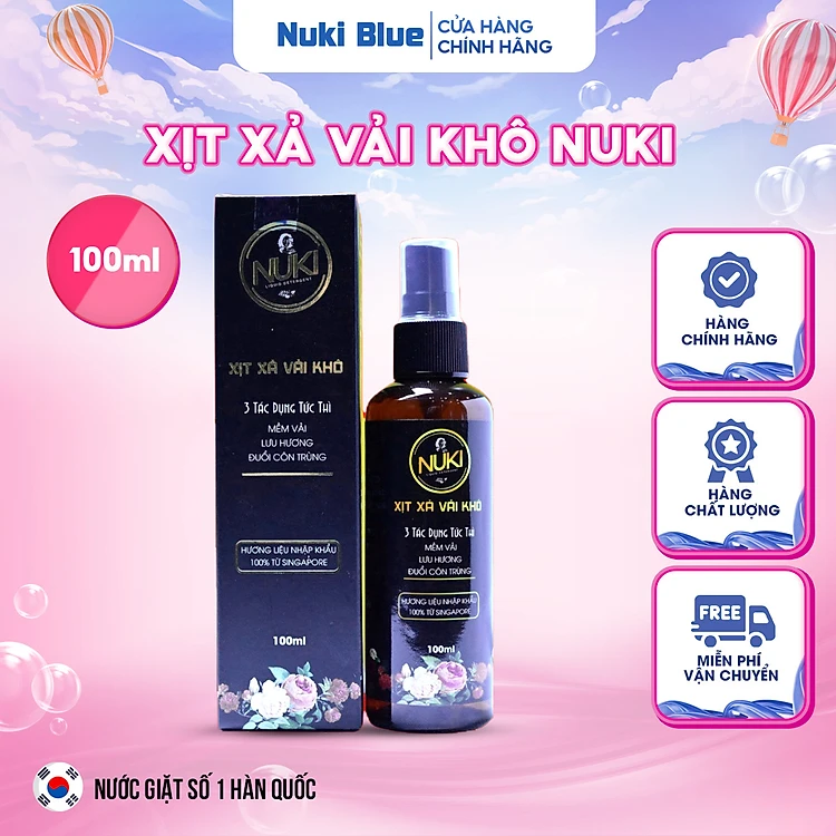Chai Xịt Xả Vải Khô Nuki 100ml Hương Nước Hoa Lưu Hương Mềm Vải,Tinh Dầu Thơm Quần Áo