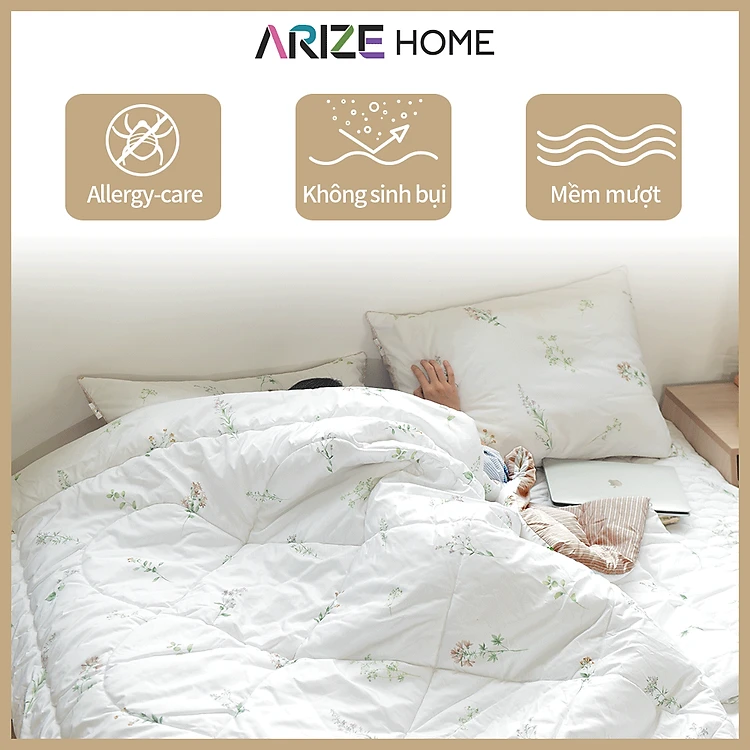 Chăn Chần Bông Arize Vải Microfiber Flower Beige 1.5mx2m, 2mx2.2m