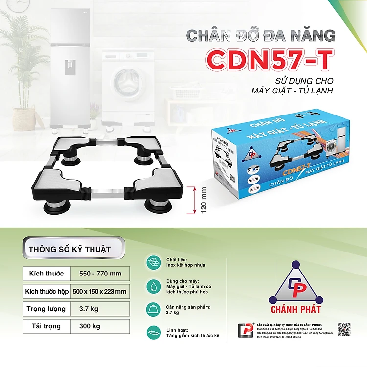 Chân đế tủ lạnh, chân máy giặt đa năng inox cao cấp có thể điều chỉnh kích thước 48-77cm CDN57-T , CTL57-T - Hàng Chính Hãng