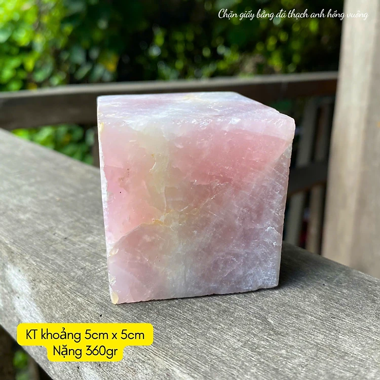 Chặn giấy bằng đá thạch anh hồng vuông NHASAN Trấn trạch bàn làm việc, thu hút vận may - KT: 260gr-370gr (4.5cm, 5cm)