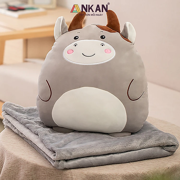 Chăn Gối Văn Phòng 3 Trong 1 Kiểu Bò Siêu Dễ Thương Dùng Để Ngủ Tại Văn Phòng Trên Sofa Màu Sắc Nhã Nhặn Vải Nỉ Siêu Mềm Mịn