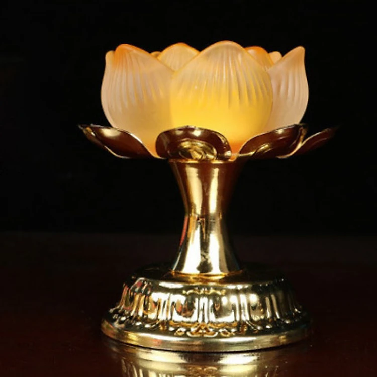Chân nến, cốc đựng nến thờ hoa sen lưu ly vật phẩm quan trọng trên bàn thờ