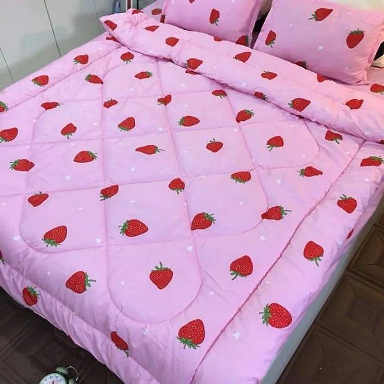 Chăn Phao Ga Gối họa tiết dâu tây dễ thương