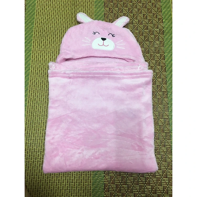 Chăn ủ lông mềm mại có mũ hình thỏ hồng