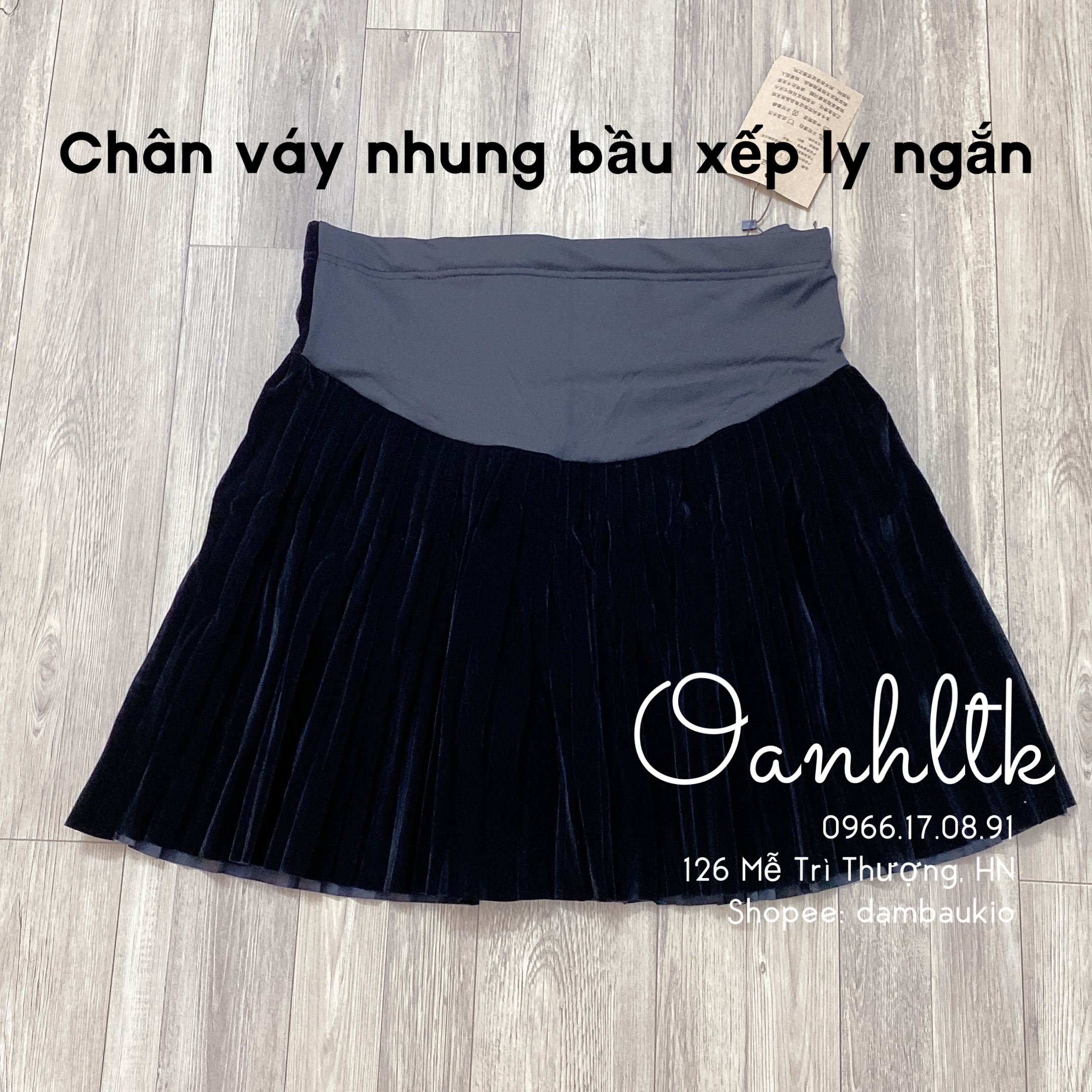 Xin chào các mom, link này em Oanh giới thiệu tới các mom sản phẩm: " CHÂN VÁY BẦU Nhung xếp ly ngắn " cho các mom 40-70kg nha