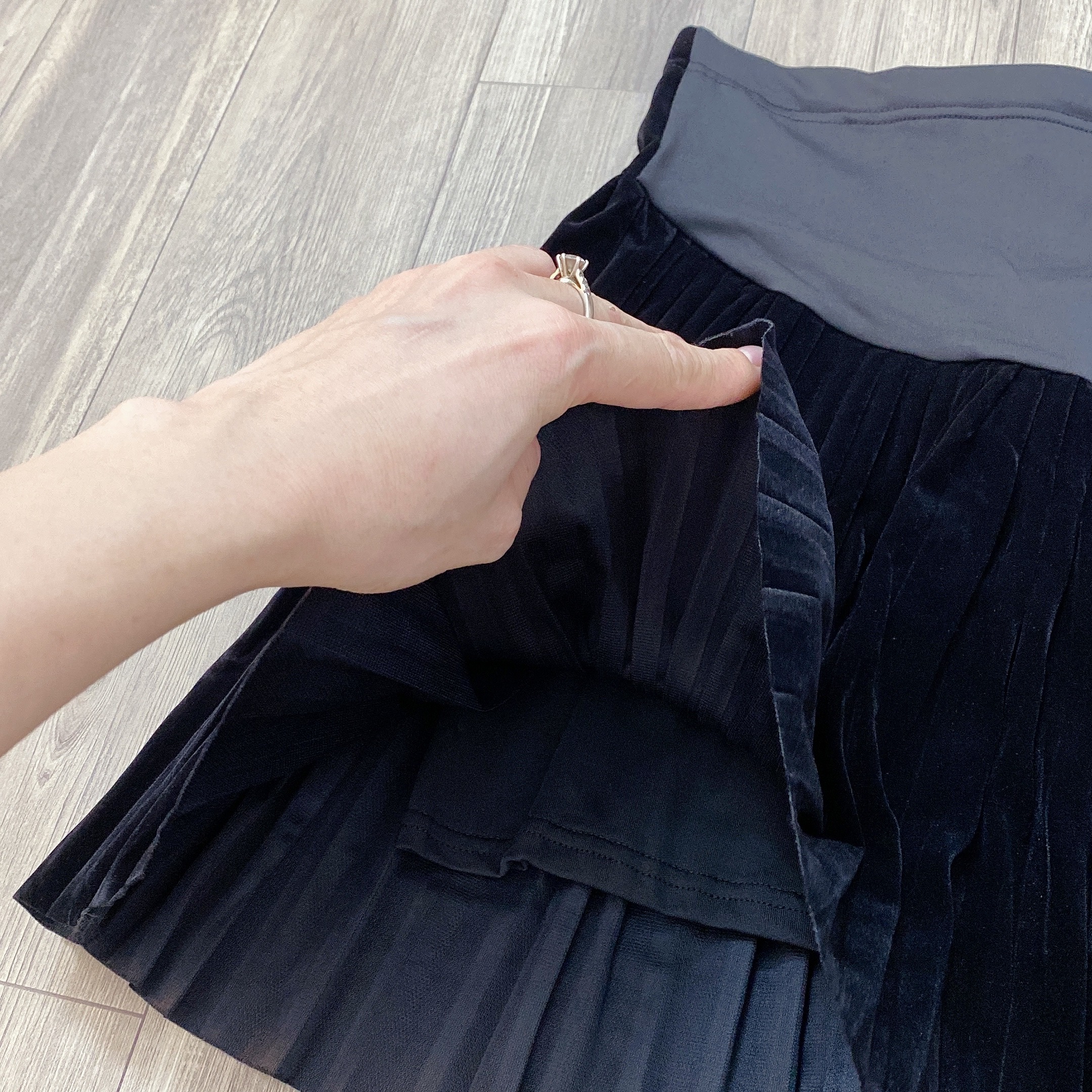 Chân váy bầu nhung xếp ly ngắn ( 40-70kg)