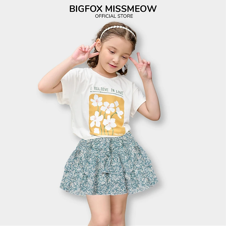 Chân váy bé gái mùa hè Bigfox Miss Meow size đại, họa tiết hoa nhí dễ thương 2 lớp cỡ 3,6,9,10,11 tuổi 30kg 40kg 1887