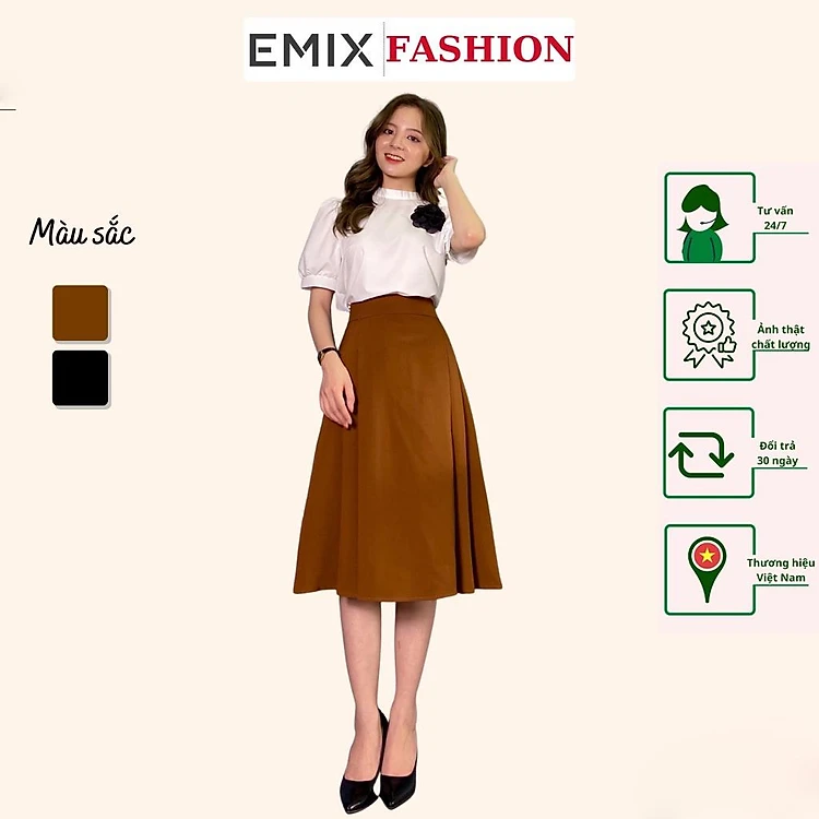 Chân váy công sở xòe xếp ly hai bên EMIX (2 màu), dáng dài, chữ A, có túi chéo, chất tuyết mưa mềm mịn