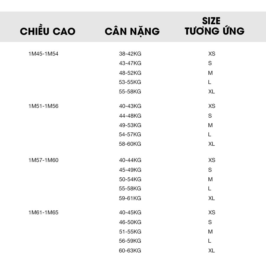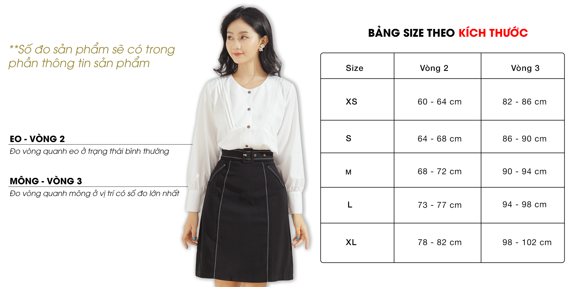 + Bảng size chart chỉ mang tính chất tham khảo, tùy thuộc vào số đo cơ thể và chất liệu vải khác nhau sẽ có sự chênh lệch nhất định.