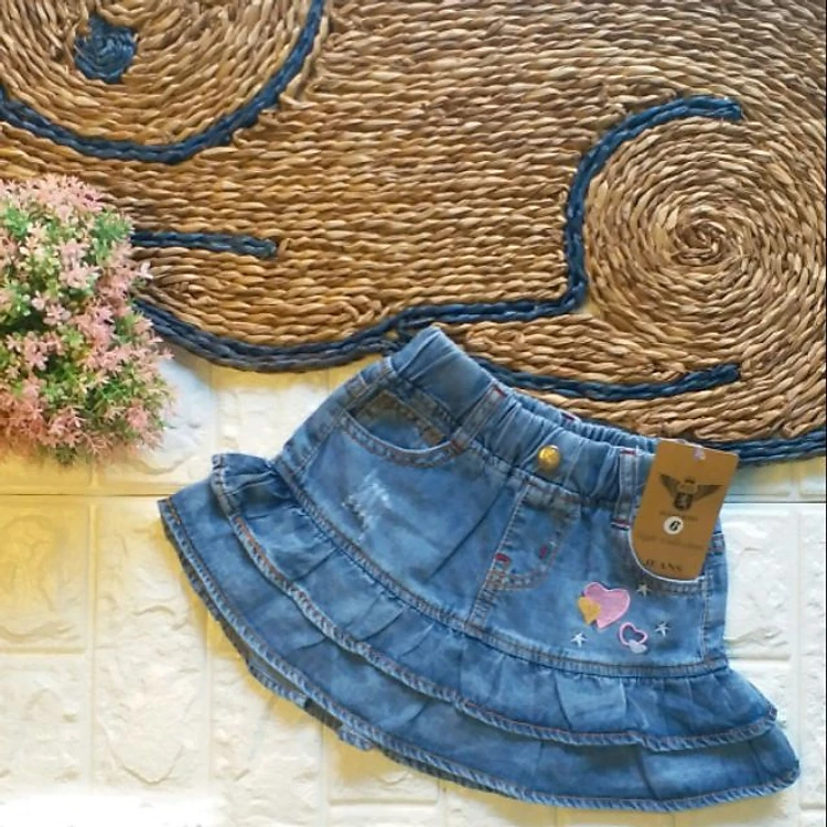 Chất jean cotton mềm mát, không nhăn. Váy may 2 tầng điệu đà, đính hình tim yêu lắm. Lưng thun mềm, túi thật trước và sau sành điệu. Form to rộng rãi.Bé mặc cùng áo thun, áo kiểu đi chơi hết sảy luôn ạ.