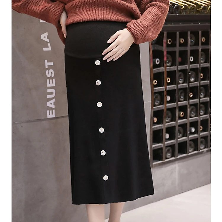 Chân váy có đáp bụng và chun chỉnh cho mẹ bầu