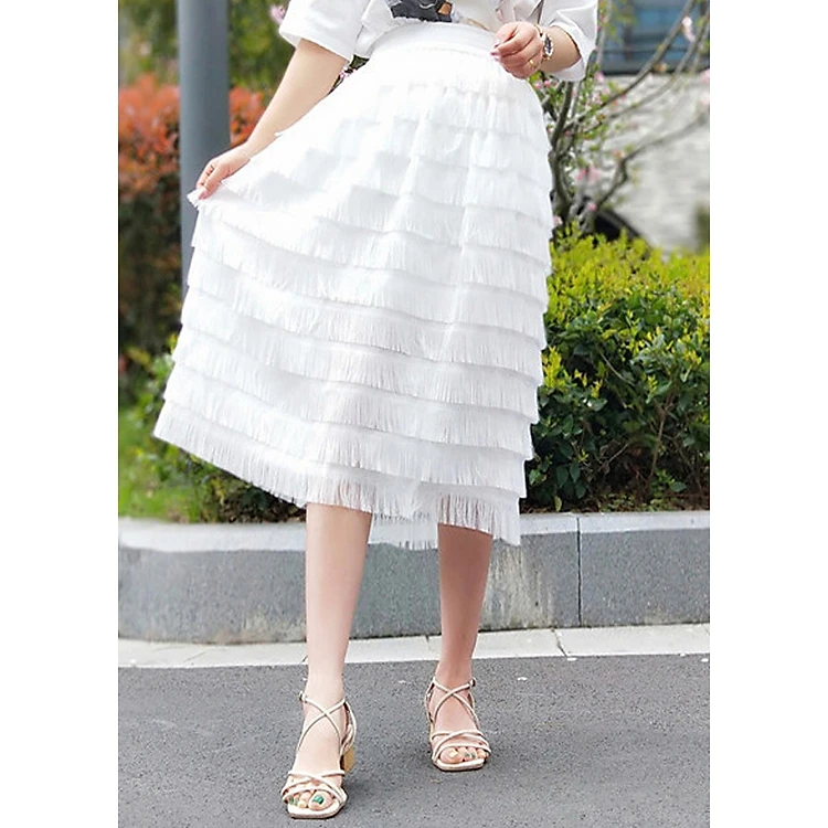 Chân váy xếp tầng thời thượng luôn biết cách gây ấn tượng của riêng mình, bởi sự thướt tha, lãng mạn và đậm chất nữ tính cũng đã “đốn ngã trái tim” của không ít quý cô. Chân váy maxi xếp tầng tua rua trắng – CV034 sẽ là gợi ý không tồi, cho những cô nàng thích thử cái mới, tự tin vào phong cách của mình và đang tìm kiếm điều gì đó thật đặc biệt. Hãy cùng khám phá ngay bây giờ nhé!